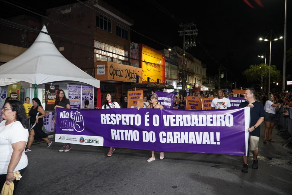 A organização oficial do evento reservou o tempo de até 50 minutos para cada agremiação. A noite foi aberta com o Bloco “Não é Não”, uma iniciativa do poder público, por meio da Secretaria da Mulher de Direitos Humanos, em que o foco é levar uma mensagem crítica à violência contra as mulheres. Na concentração, inclusive, havia uma tenda para denúncia de abuso e assédio, além da presença de advogadas da OAB-Cubatão orientando juridicamente as mulheres.