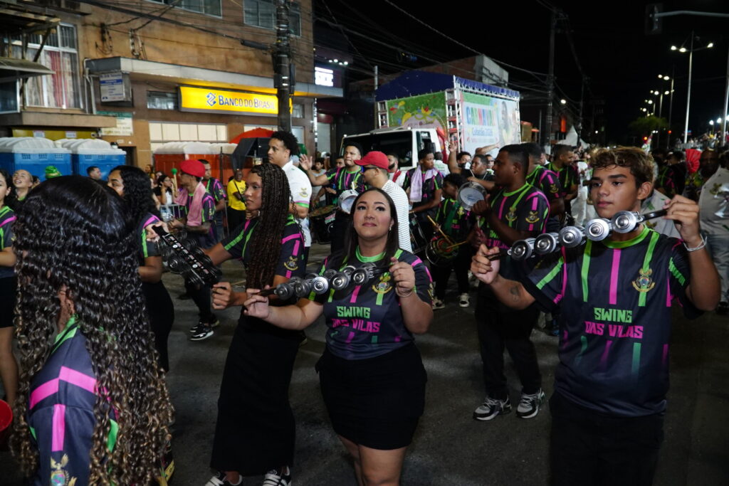 2 – Mocidade Unida das Vilas – Sediada na Vila Esperança, a escola tem cores verde, rosa, branco e dourado e é presidida por Walter Lemos. Em 2026, apresentou o enredo “O Dilúvio Kaxinawá – A Renovação Kene Pelas Águas Encantadas”, inspirado na cultura indígena e na valorização dos saberes ancestrais. O carnaval é dirigido por Valdomiro Rodrigues (Miro) e a bateria comandada por Lucas (Muchatcho).