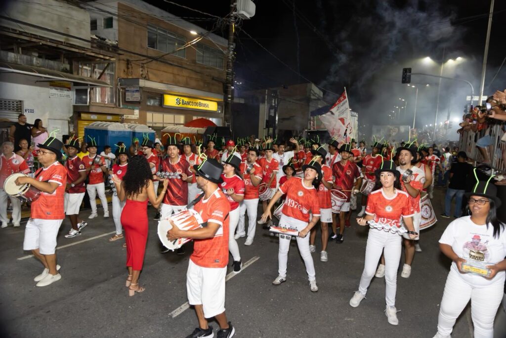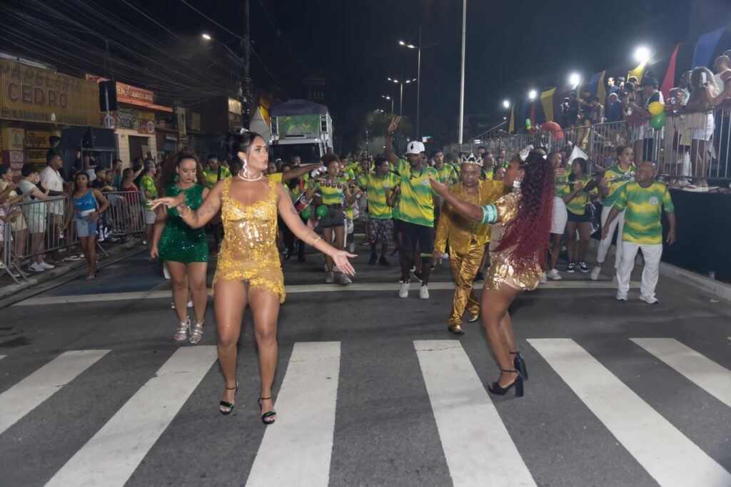 1 – União da Ilha Caraguatá – Representando o bairro Ilha Caraguatá, a escola se apresentou nas cores preto, azul, branco e dourado. Presidida por Israel Barbosa do Rosário (Lelo Garoto), levou para a avenida em 2026 o enredo “Lá vem a Ilha cheia de felicidade cair no samba junto com a comunidade”. A bateria tem comando de Mestre Guina e o intérprete oficial é Primo do Pandeiro.