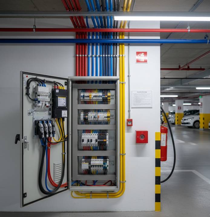 Mesmo quando a vaga é privativa, a energia utilizada passa pela infraestrutura comum do condomínio: quadros elétricos, barramentos, cabos e capacidade instalada do prédio. Isso significa que decisões individuais podem afetar todos.