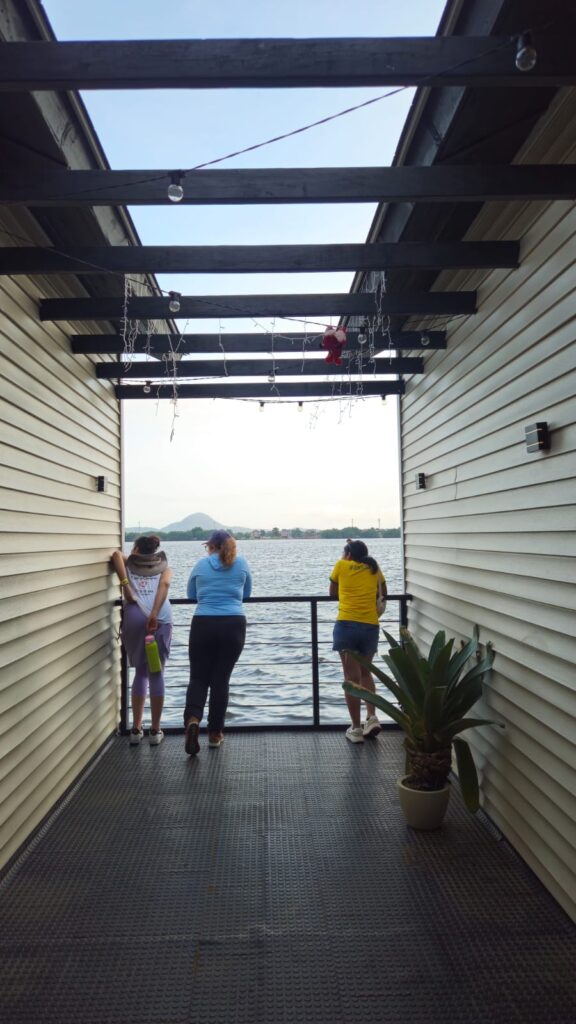 A visita ao Píer do Casqueiro permitiu que os participantes conhecessem de perto uma solução inovadora para áreas sujeitas a alagamentos e à elevação do nível do mar.