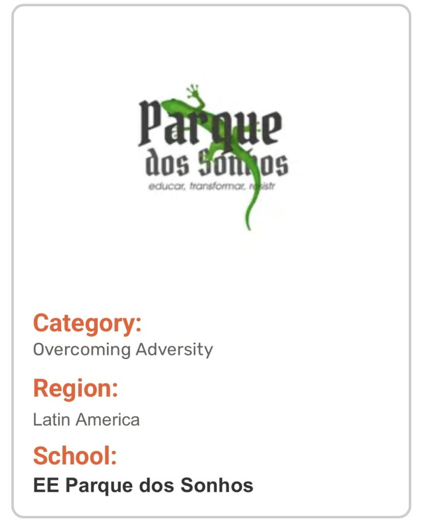 Dia 30/09 a Escola Estadual Parque dos Sonhos, localizado no bairro do Jardim Real (Bolsão 9), em Cubatão/SP, recebeu o prêmio de Melhor Escola do Mundo na modalidade Superação de Adversidades.