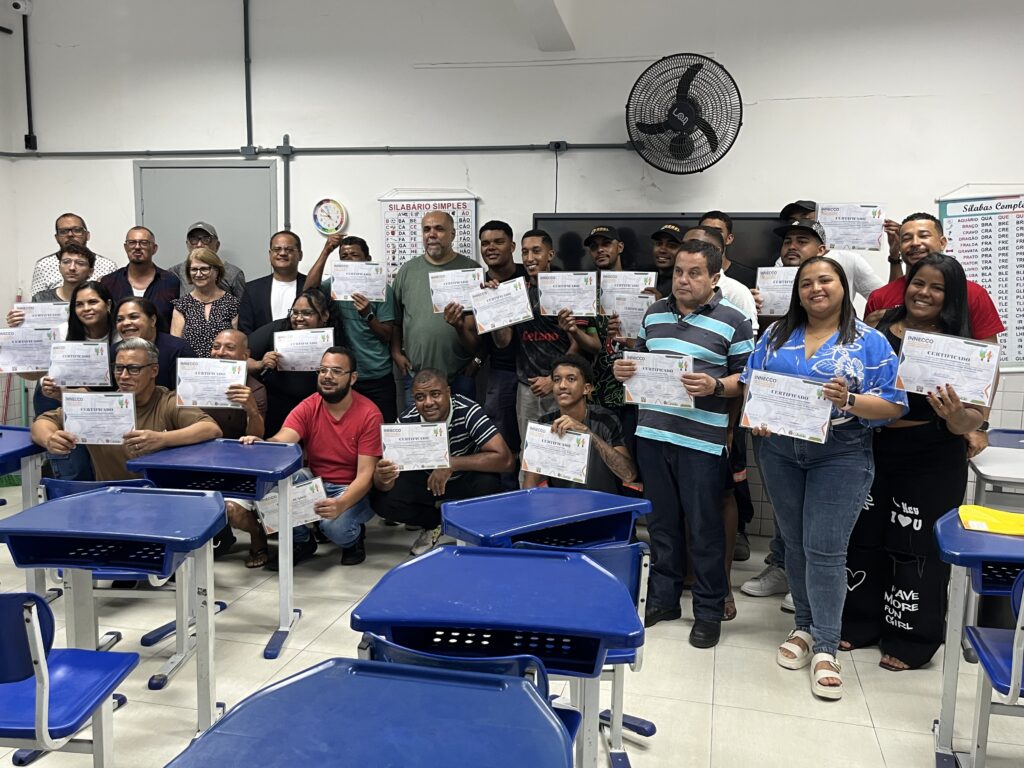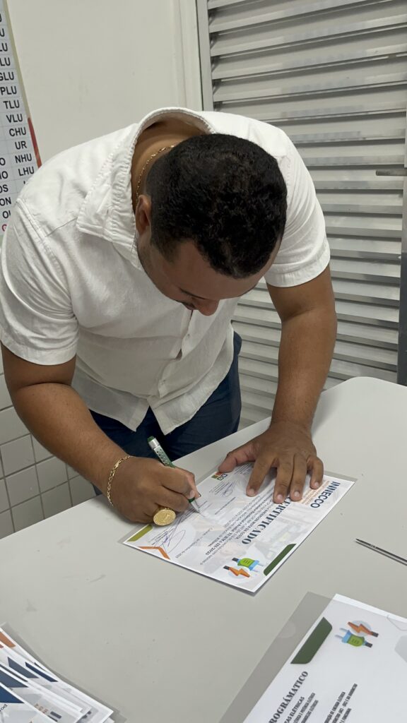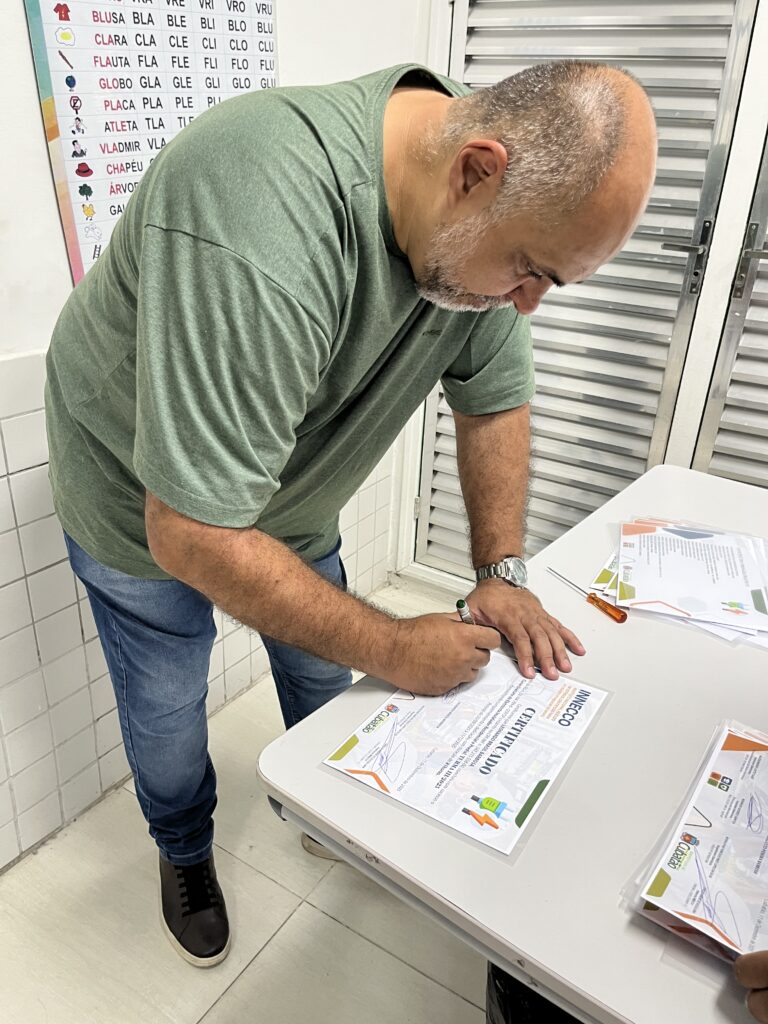 O local do curso foi na Escola Antônio Ortega Domingues, no Jardim Casqueiro, que fica na Rua Martim Afonso n. 160, em sala climatizada com auxílio de tela interativa e pranchetas didáticas para as dinâmicas práticas, fruto de parceria com a Prefeitura Municipal de Cubatão, que por meio da SEDUC autorizou a utilização da unidade e o Diretor Luiz Costa que auxiliou e orientou na disponibilização do espaço.