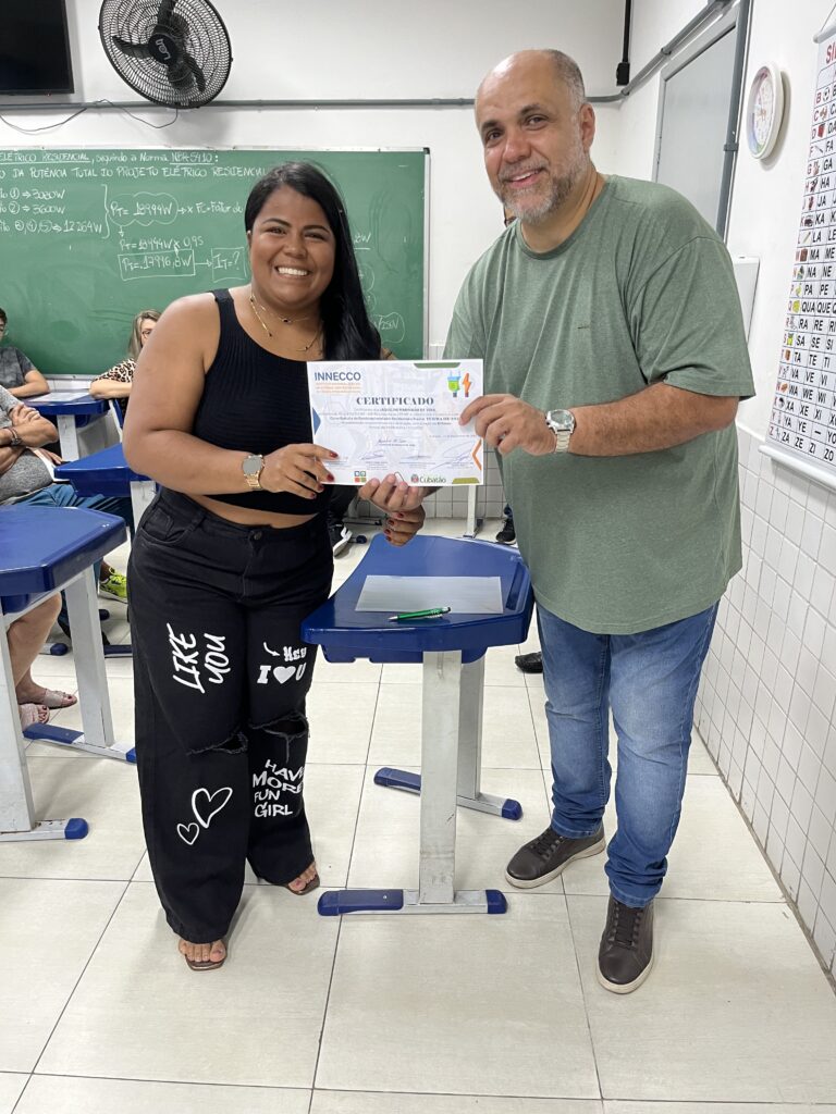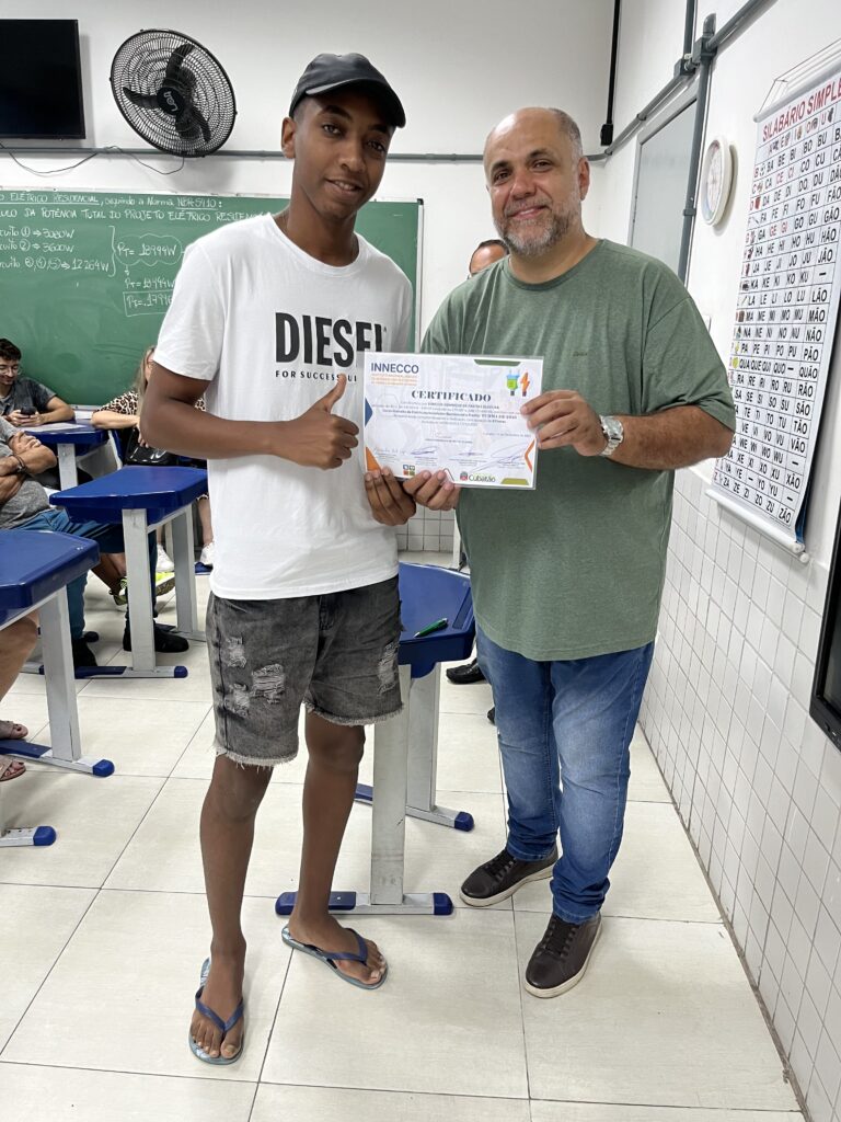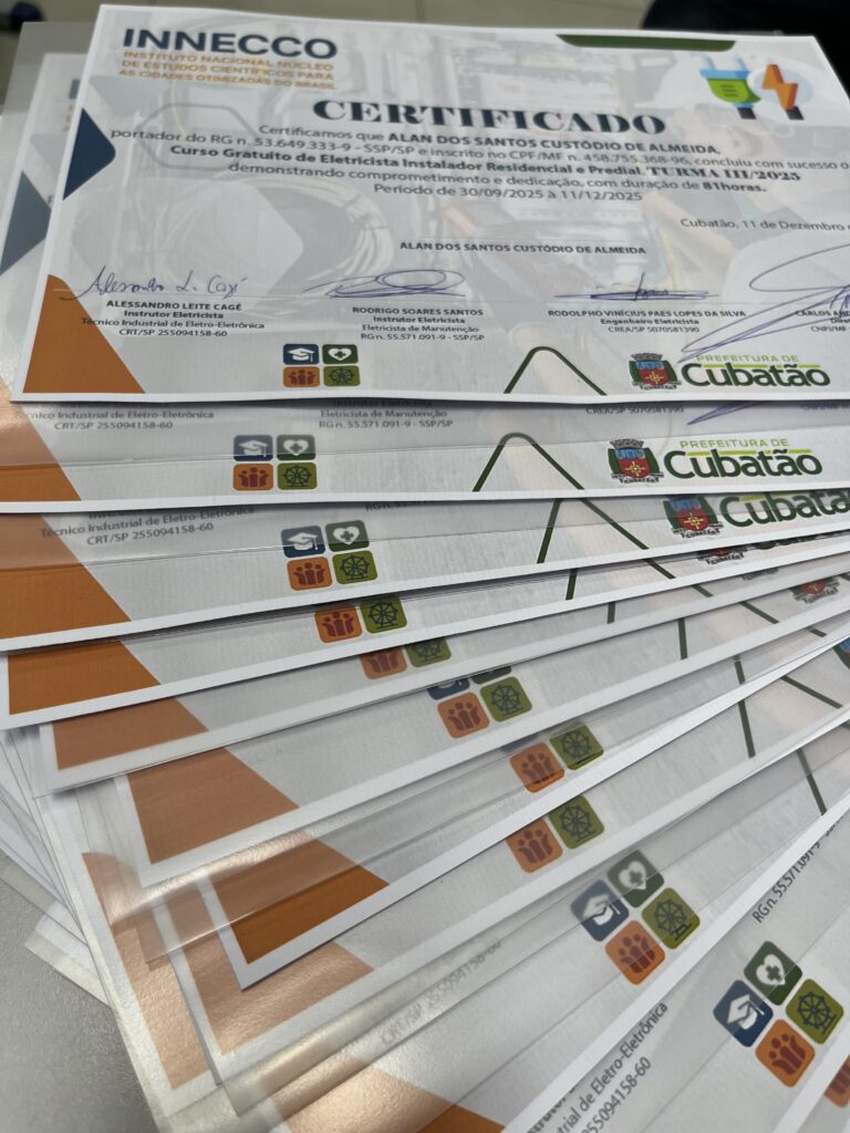Ontem (11/12) ocorreu a formatura da 3ª Turma de 2025 do Curso Gratuito de Eletricista Instalador Residencial e Predial do Instituto Cubatense INNECCO. Com a presença ilustre da Deputada Estadual Solange Freitas, que destinou verba parlamentar para garantir a continuidade do projeto para o ano de 2026, desta vez foram 24 formandos que frequentaram as aulas entre 30/09/2025 e 11/12/2025, perfazendo a carga horária de 81 horas.