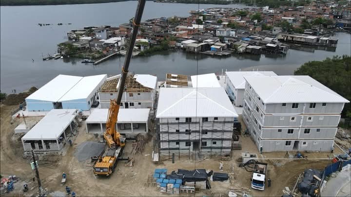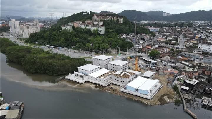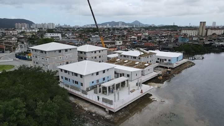 Diferente do Parque Palafitas que está sendo feito na cidade de Santos, onde o projeto (também inédito no Brasil), em andamento na Vila Gilda, iniciado em Dezembro/2024, prevê a construção de 60 unidades habitacionais em uma área de 4 mil m2, suspensa sobre a maré e sustentada por estacas fincadas em 35 metros de profundidade.